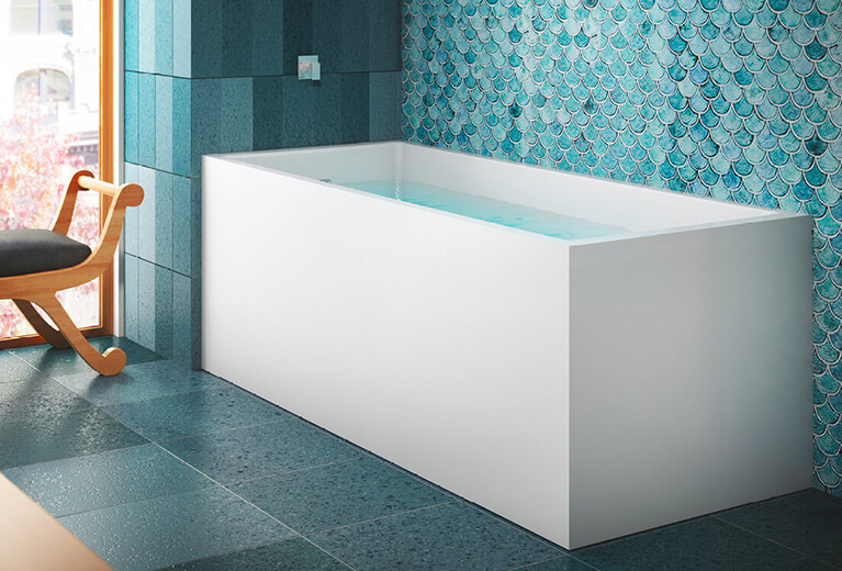 This new collection offers freestanding cubic and oval baths that are pure and understated for one or two bathers. Versatile, the cubic shape baths can be easily installed against one, two or even three walls, for a stunningly optimal use of space. With their clean, pared-down geometry, these baths blend in seamlessly with a variety of architectural styles, making Nokori the perfect emblem of Universal Design.